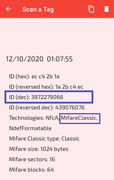 2. 자주 사용하는 RFID카드(신용카드, 회원카드, 교통카드, 멤버십카드 등) 정보를 리딩하여 decimal 정보 10자리를 1:1 게시판에 올려주시면 마스터카드로 추가등록 가능합니다. 일부 카드는 형식이 맞지 않아 등록이 불가하니, Mifare Classic Type 의 카드로 신청바랍니다.