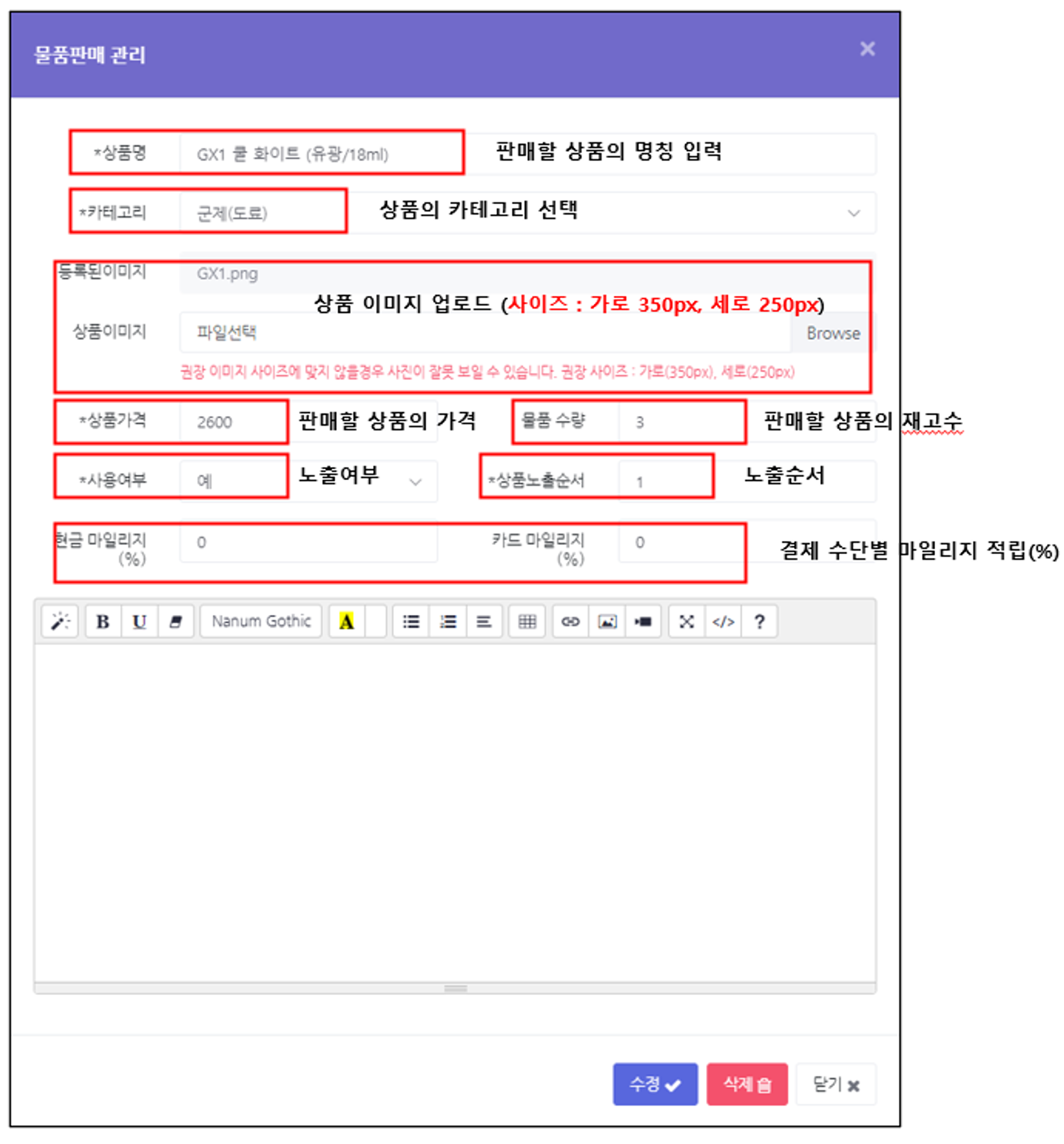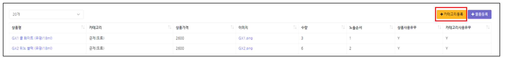 상품을 등록하기 전에 반드시 카테고리를 등록하고 카테고리에 맞게 상품을 등록
