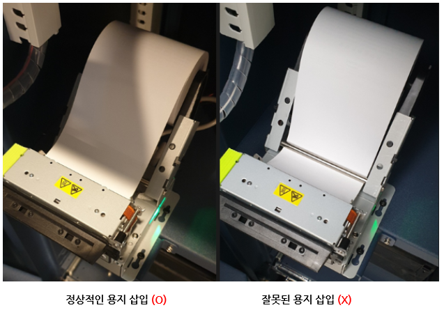 감열지 롤을 거꾸로 장착한 경우 인쇄가 되지 않고 백지로 출력됩니다.