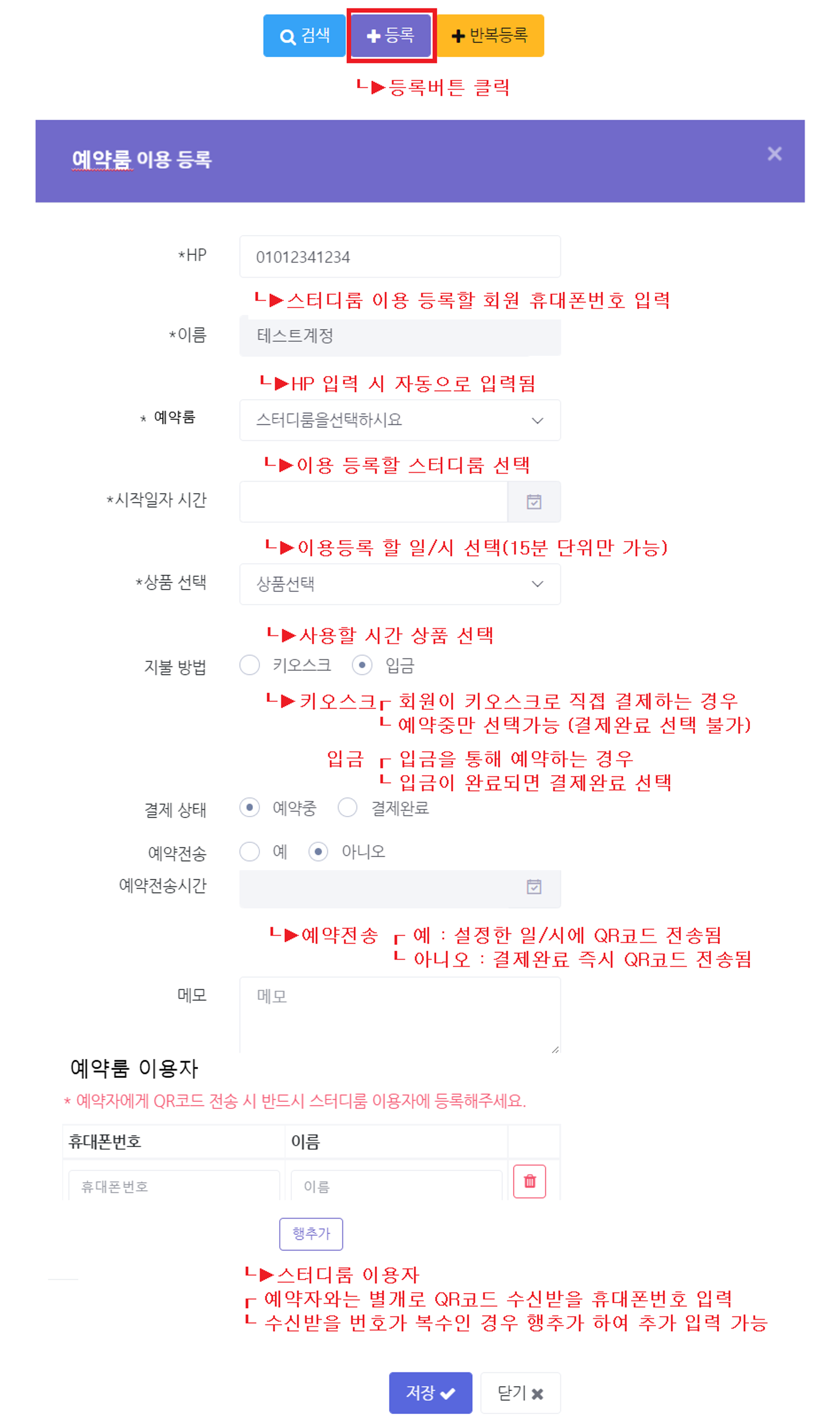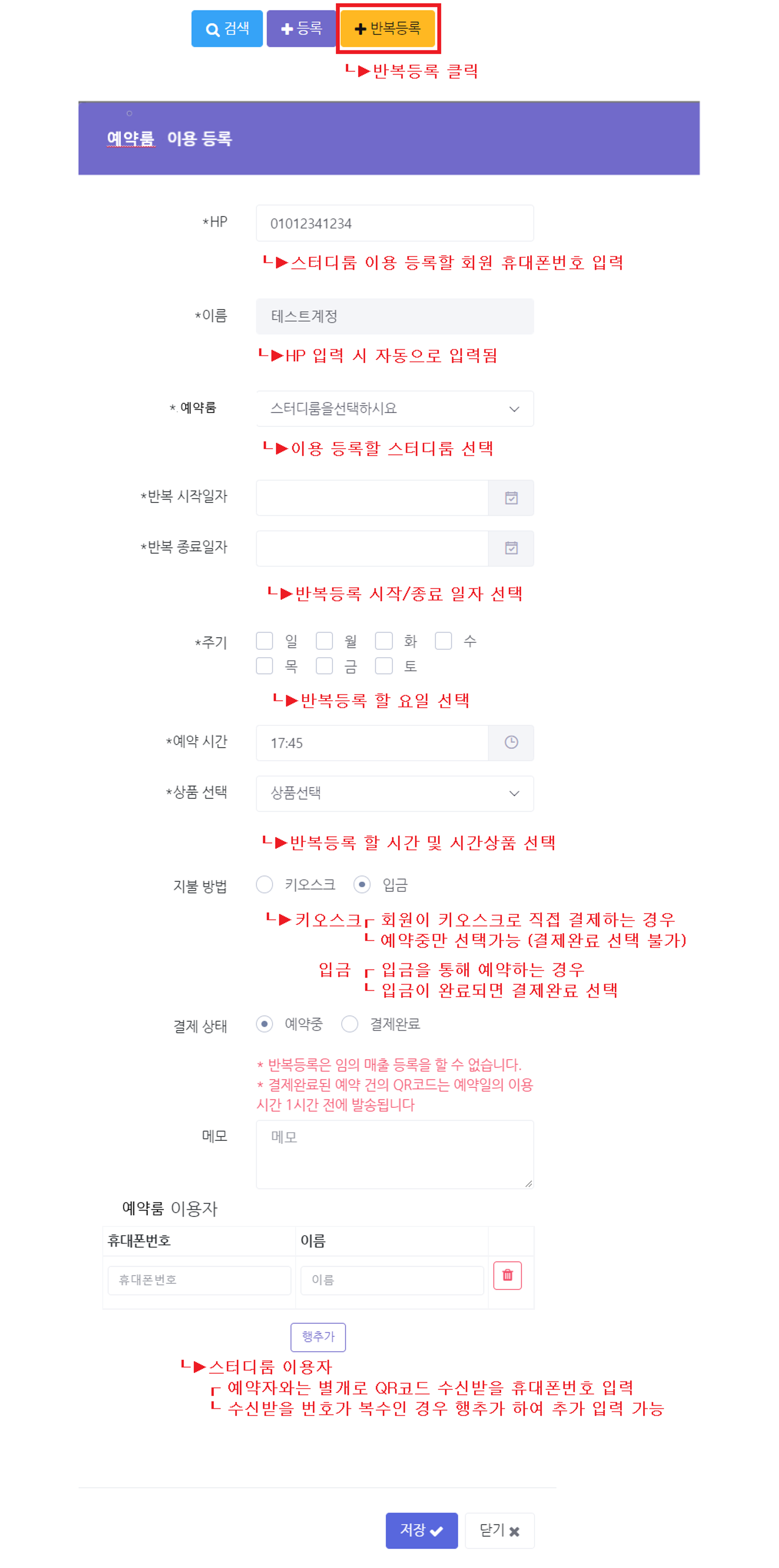 2. 예약룸 반복등록 방법