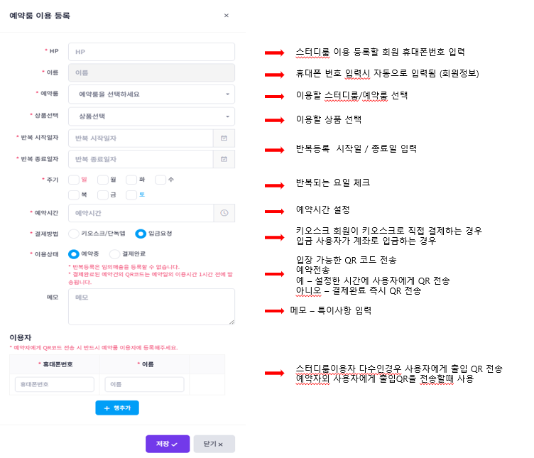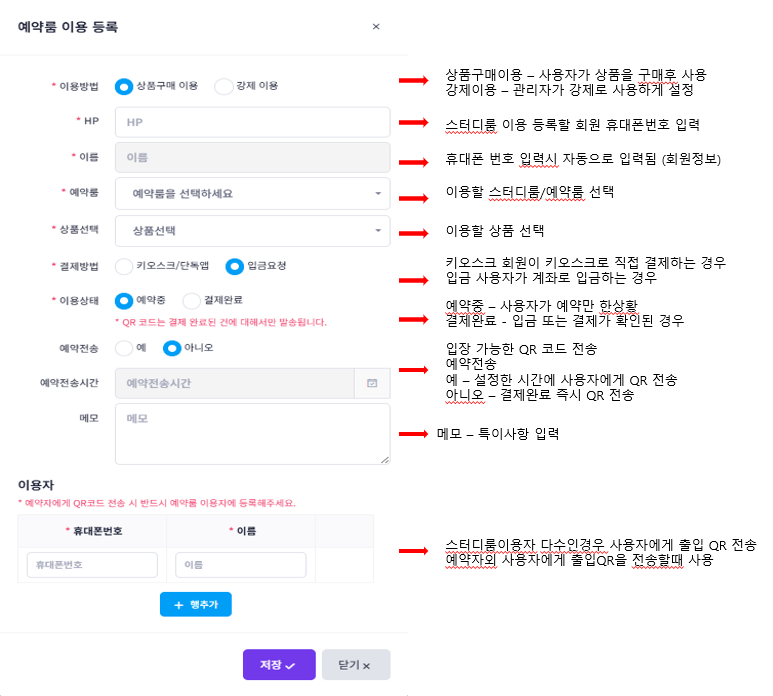 예약룸 시작시간 15분이 경과했음에도 결제상태가 “예약중”인 경우 해당 예약건은 다른 예약을 위해 자동으로 취소됩니다.