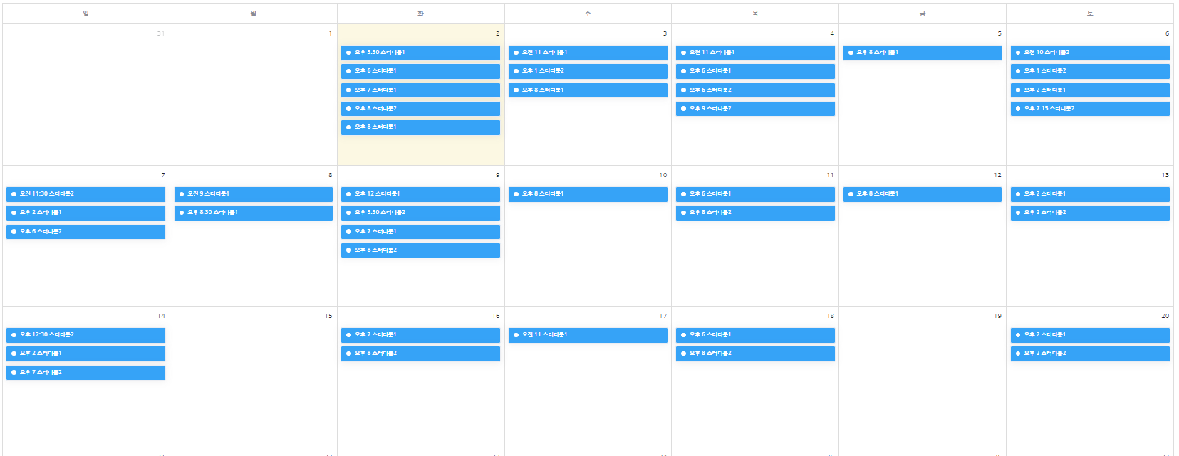 스터디룸 이용 현황을 캘린더 형태로 조회할 수 있습니다.