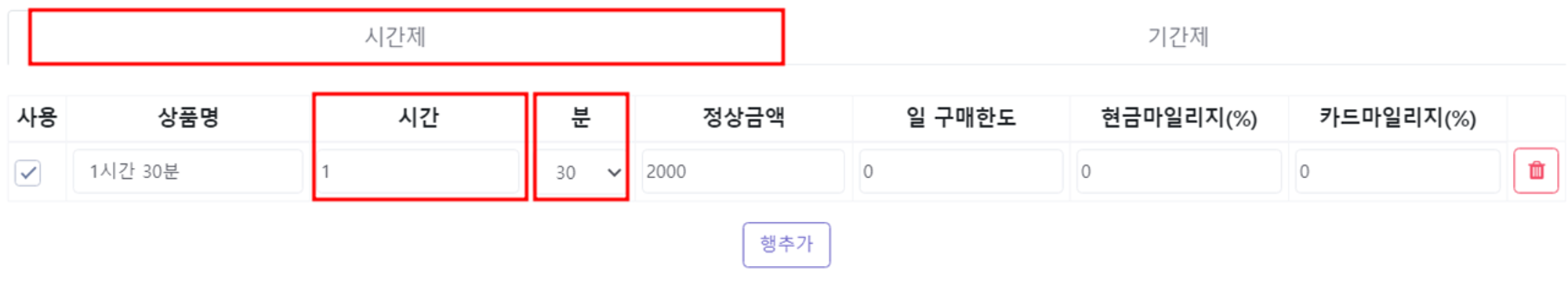 예시) 1시간 30분의 예약룸 상품을 생성