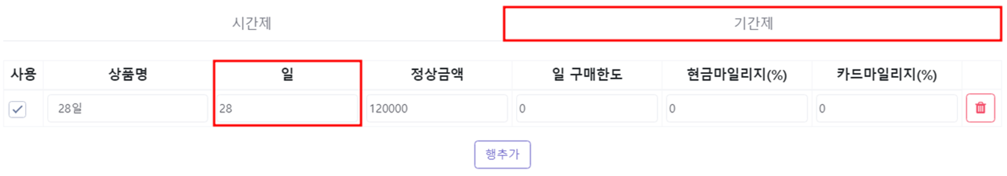 예시) 28일의 예약룸 상품을 생성