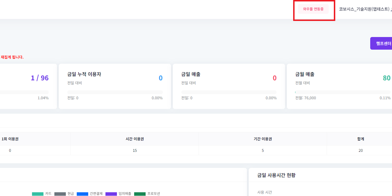 ※ 파트너센터 대시보드 상단의 [와우플 연동중] 버튼을 클릭 시 스토어정보 관리자 페이지로 이동합니다.