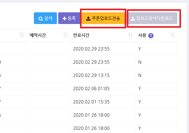 전송관리 > 쿠폰전송관리 의 쿠폰업로드전송 기능을 사용합니다.