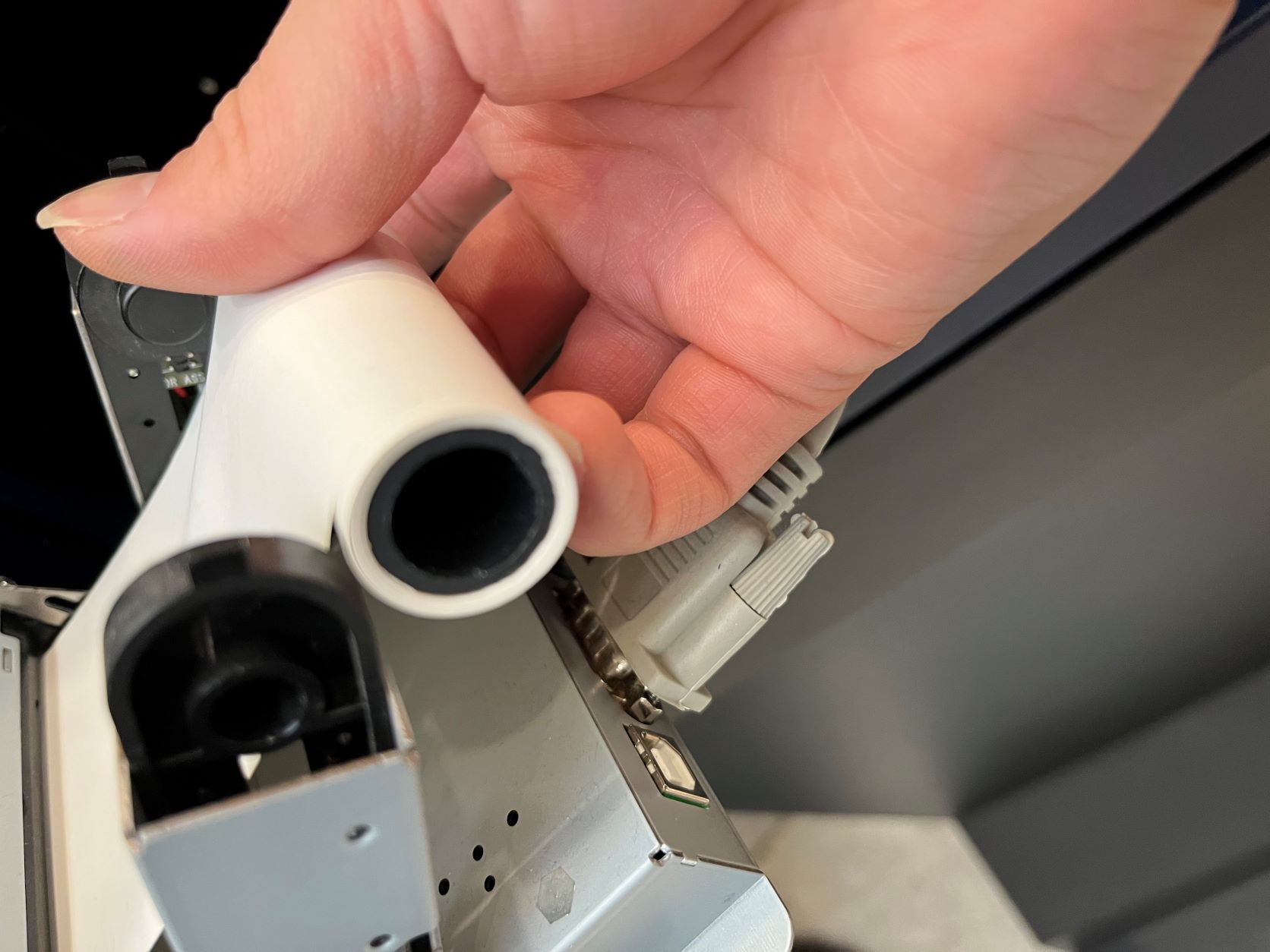 3. 버튼 누른 후 영수증 용지 흰색 심을 꺼냅니다.