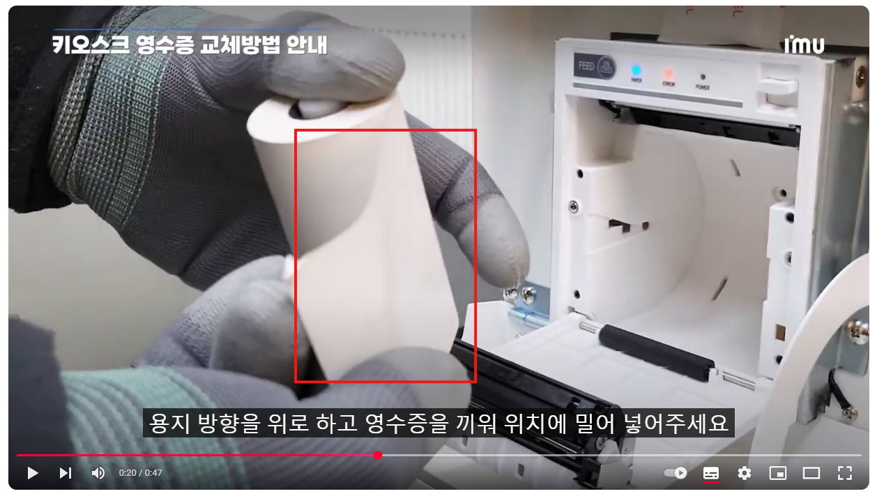 [CBK-I22A (아임유) 키오스크 영수증 용지 교체방법 추가되었습니다.]
