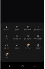 2. 상기 이미지와 같은 화면에서 [설정] 을 클릭하여 주세요 (단말기 기종에 따라 브라우저 설정 기능 접근방식은 일부 차이가 있을 수 있습니다)