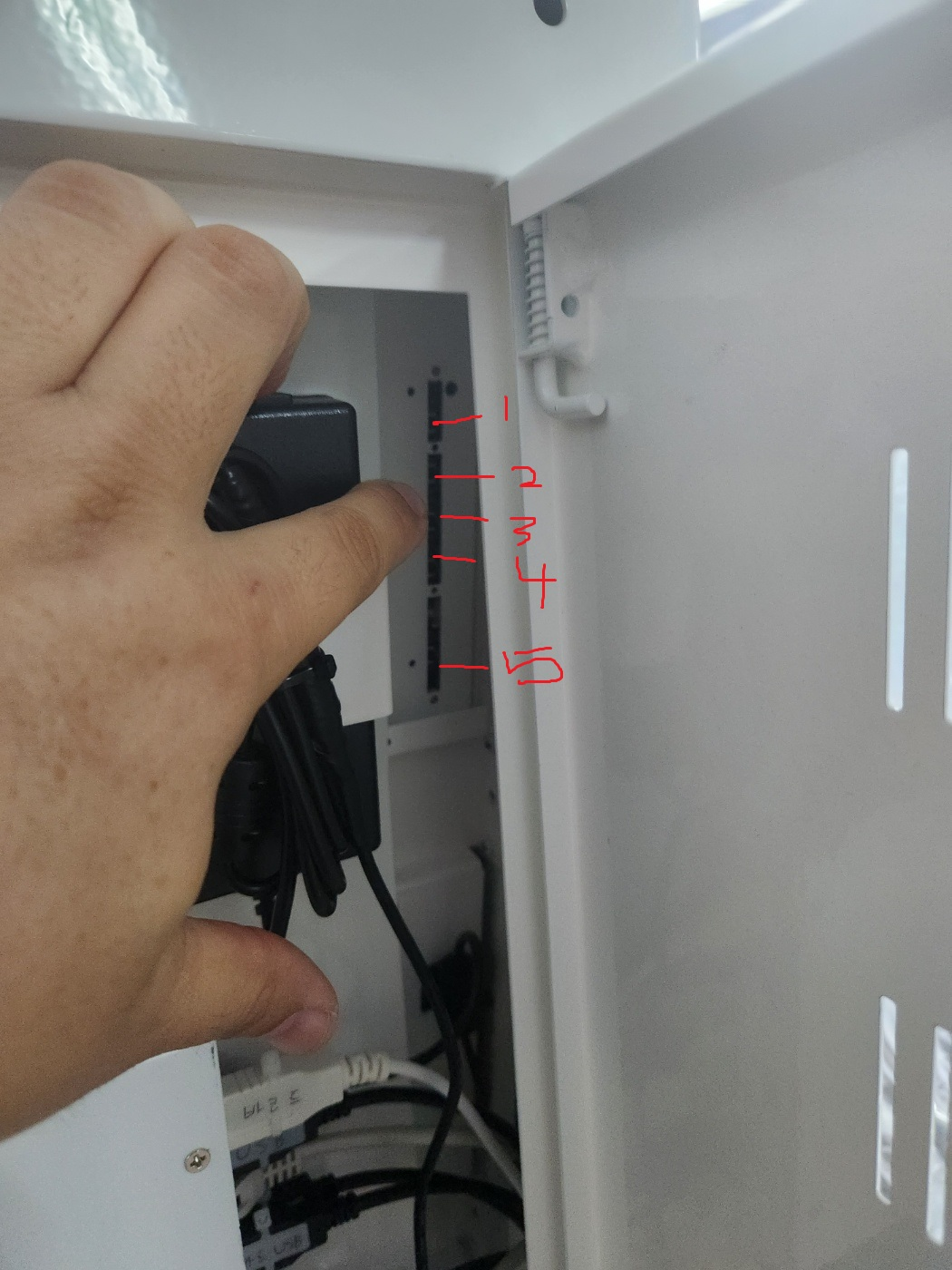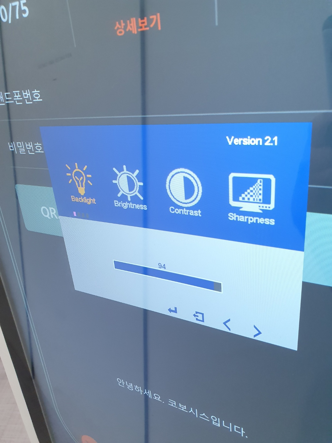 뒷면 우측에 버튼식으로 조절이 가능합니다.1. 메뉴2. 선택3. 좌로 이동4. 우로 이동5. 모니터 전원유의) 초기 모델의 경우 PC부 안쪽에 버튼이 있음, PC부에 나사(6개가량) 를 풀고 안쪽을 봐야합니다.