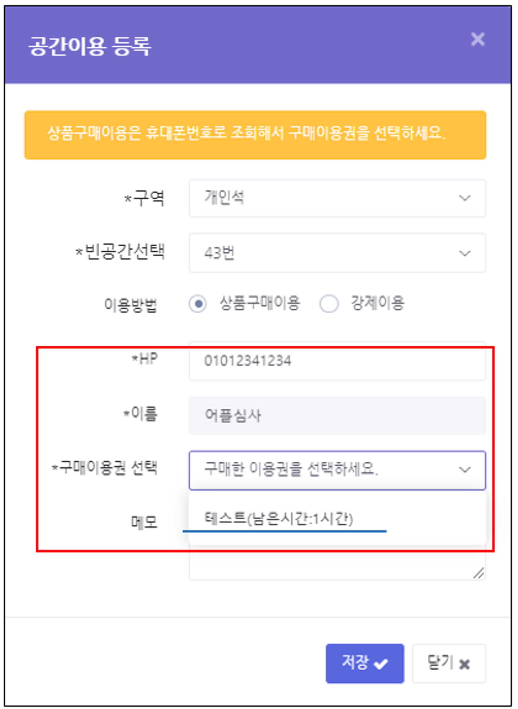 구매이용권 선택(반드시 사전에 상품을 보유하고 있는 이용자여야 함)